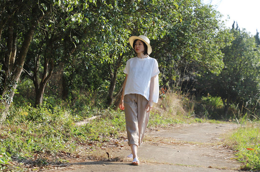 White Oversized Linen Square Top with Twisted neck to0201 26028
