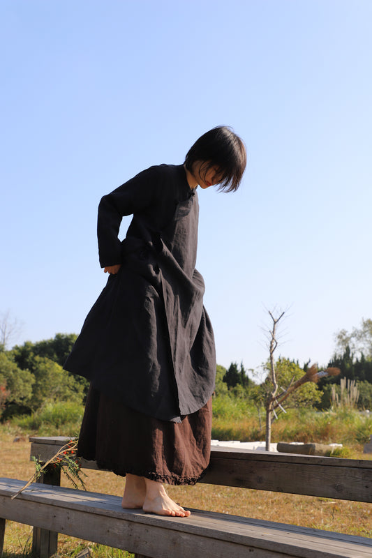 Loose Black Linen Wrap Qipao Dress dr0322 26021