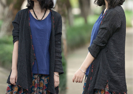 Textured Linen Cardigan with Hand Embroidery to0129 116