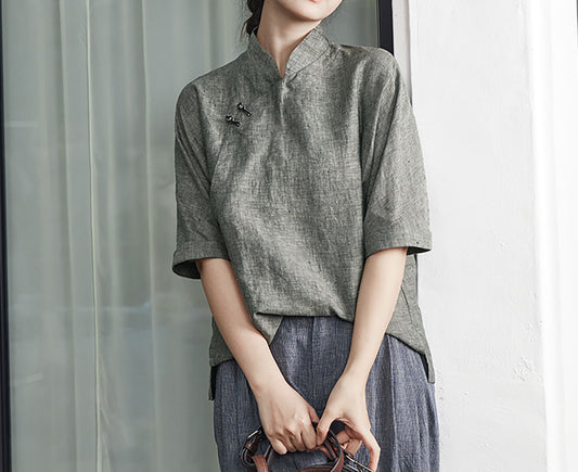 Linen Cheongsam Blouse bl0056 W114