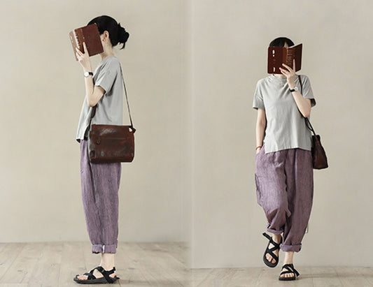 Distressed Crinkled Linen Tapered Boyfriend Pants pa0038 B083