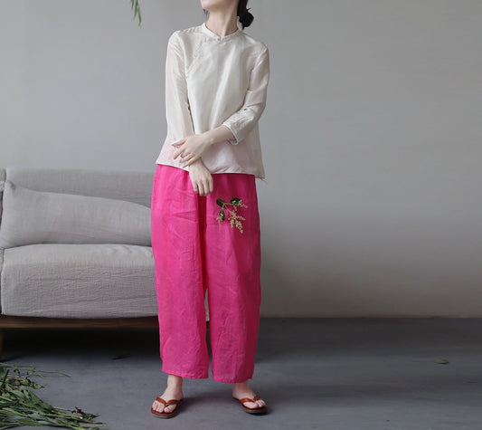 Pink Wide Leg Linen Pants with pockets pa0007 W107