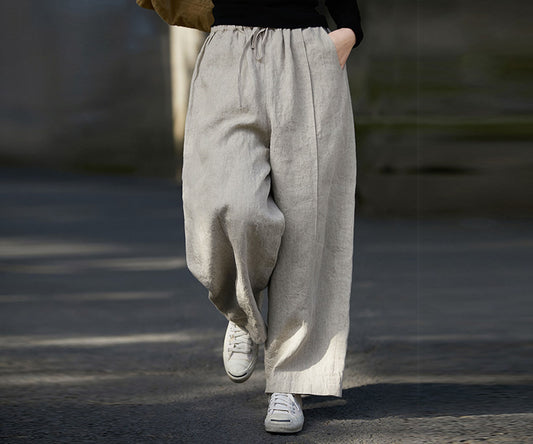 Washed Linen Wide Leg Pants pa0076 W039