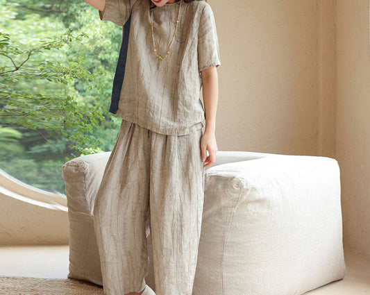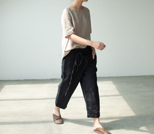 Crinkled Linen Crop Pants pa0081 I047