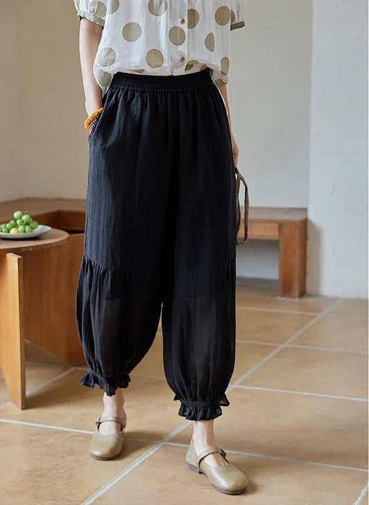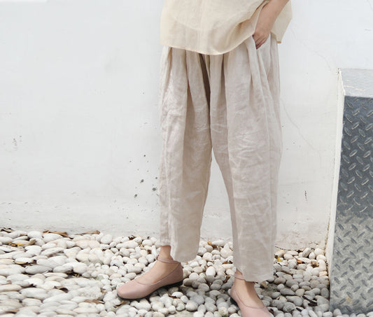 Distressed Crinkled Linen Tapered Boyfriend Pants pa0038 B083