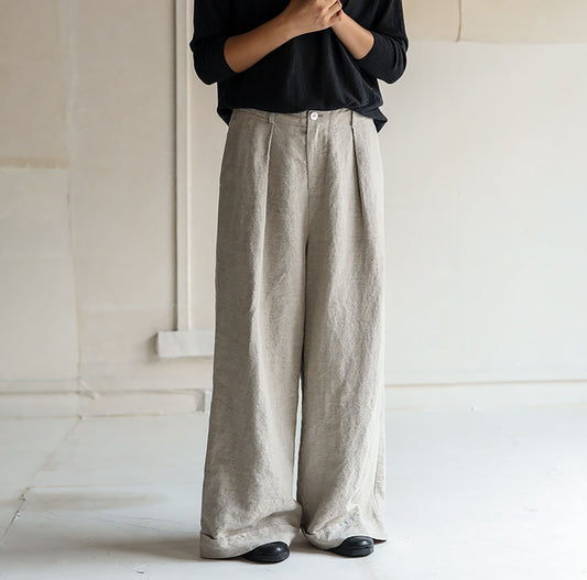 Pleated Boyfriend Washed Linen Pants pa0044 Q012