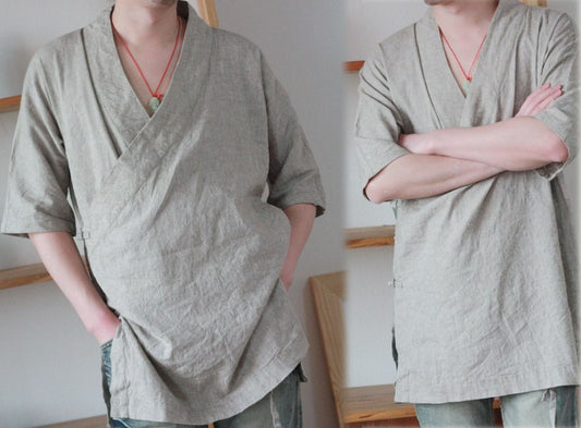 Washed Lithuanian Linen Kimono Shirt sh0001 160