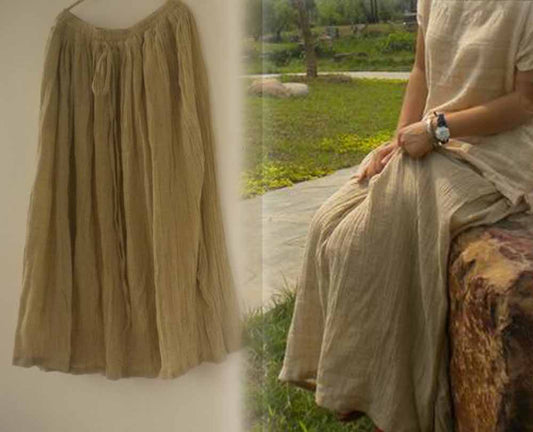 Textured Washed Linen Long Skirt sk0003 119