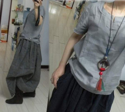 Boho Gray Linen Skirt sk0001 029