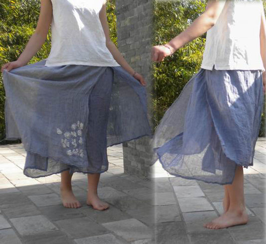 Hand Embroidered Linen Gauze Skirt sk0002 074