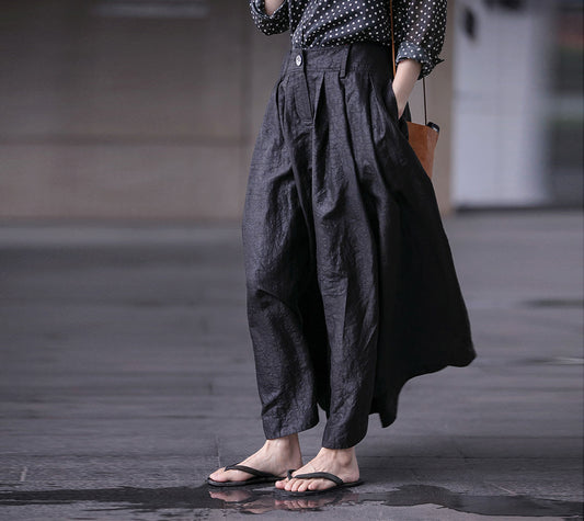 Distressed Crinkled Pigment Dyed Linen A-line Pleated Skirt sk0017 W047
