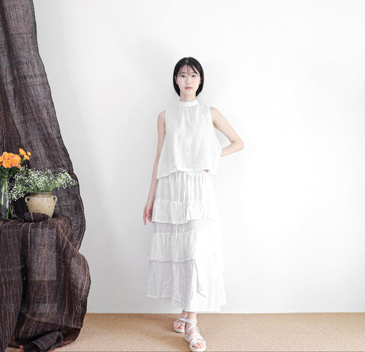 Maxi Linen Tiered White Skirt sk0005 24609