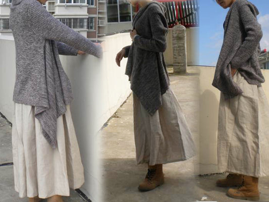 Boho Gray Linen Skirt sk0001 029