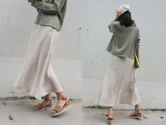 Textured Washed Linen Long Skirt sk0003 119