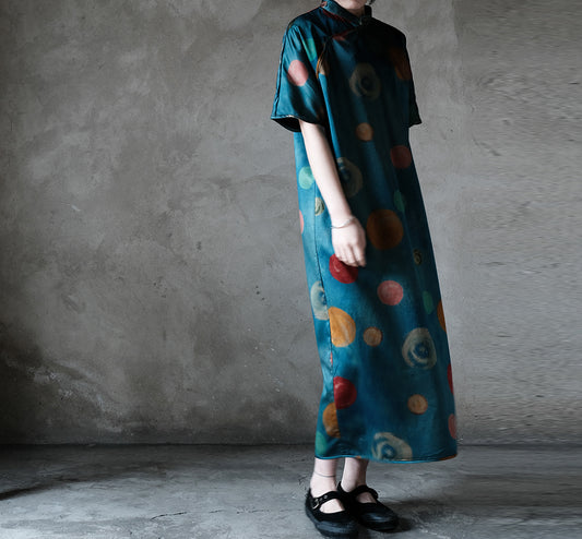 Heavy Weight Printed Charmeuse Mud Silk Satin Modified Qipao Dress dr0010 N122
