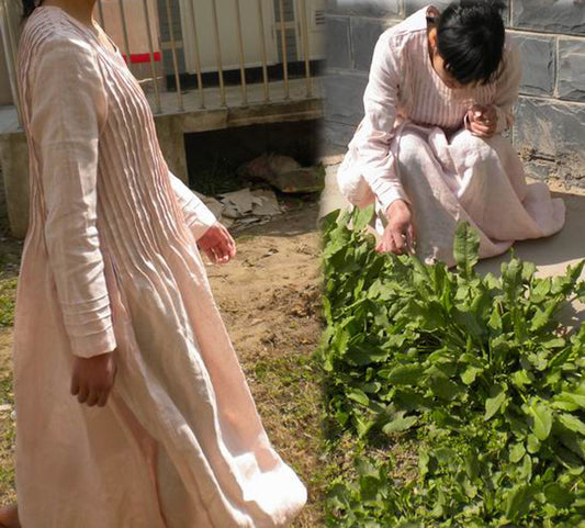 Pintucked Pink Maxi Linen Dress dr0005 072