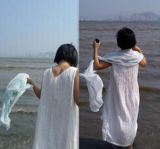 Crinkled Ramie White Sleeveless Dress dr0008 146
