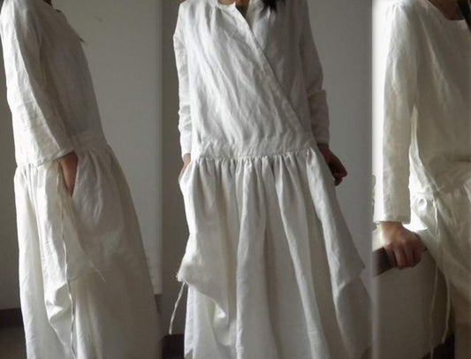 White Linen Maxi Dress dr0003 100