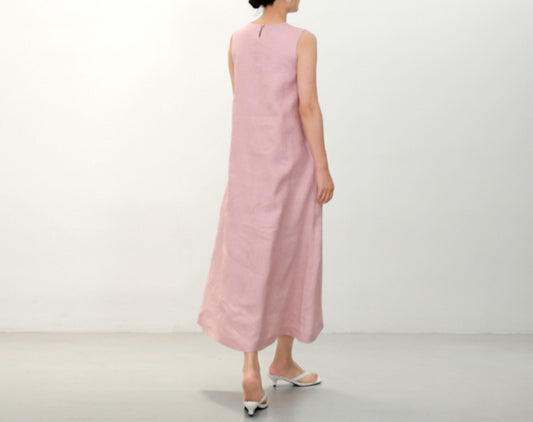 Pink Linen Sleeveless Summer Dress dr0019 W102