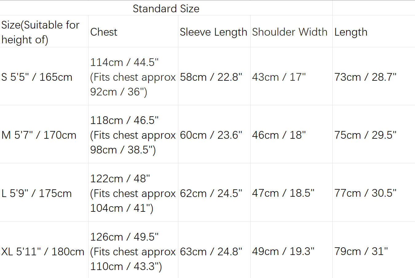 If your height is over 5'11"/180cm or sizes over size XL, please choose CUSTOM in the size options.