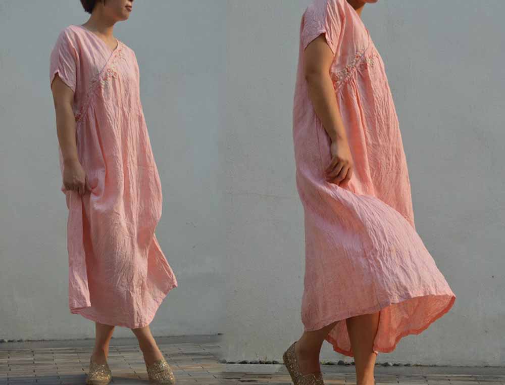 Yarn Dyed Linen Dress with Hand Embroidery dr0050 495